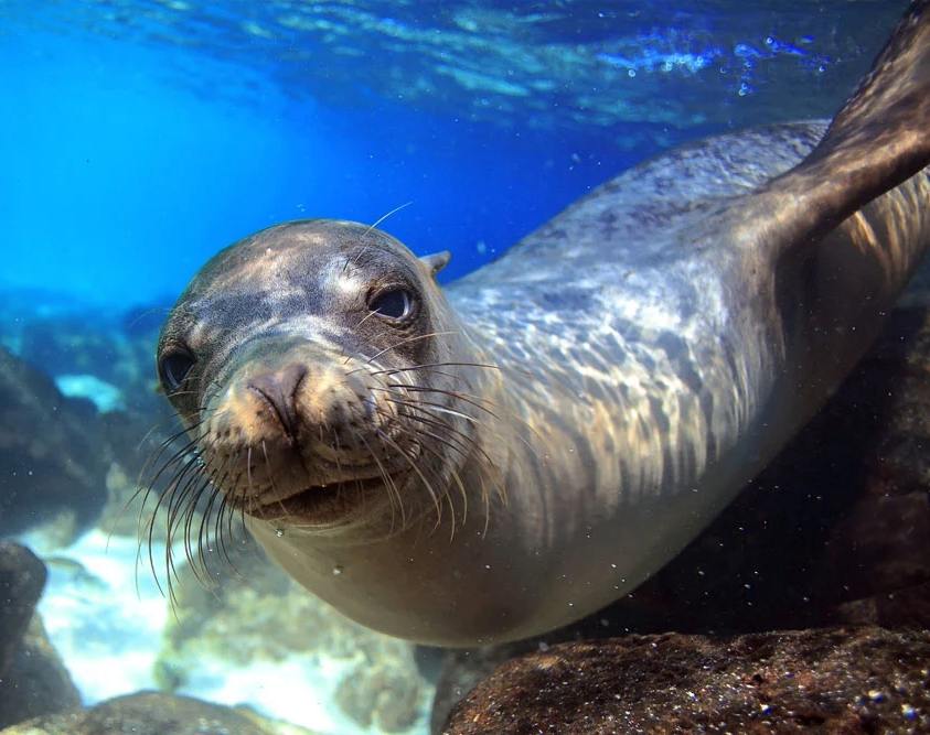 At Wolf Island you can expect to see huge Galápagos sharks and eagle rays up close, whilst dives at Cabo Marshall will put you face to face with giant manta rays or in the midst of a school of millions of black-striped salemas. Mola mola (Sunfish) may also be seen around Punta Vincente Roca and various other locations across the Galápagos Archipelago. Macro life is plentiful with Black Coral bushes sheltering seahorses, blennies, nudibranchs, hawkfish and frogfish. Marine iguanas are a unique sight, along with speedy Galápagos penguins and playful sea lions.